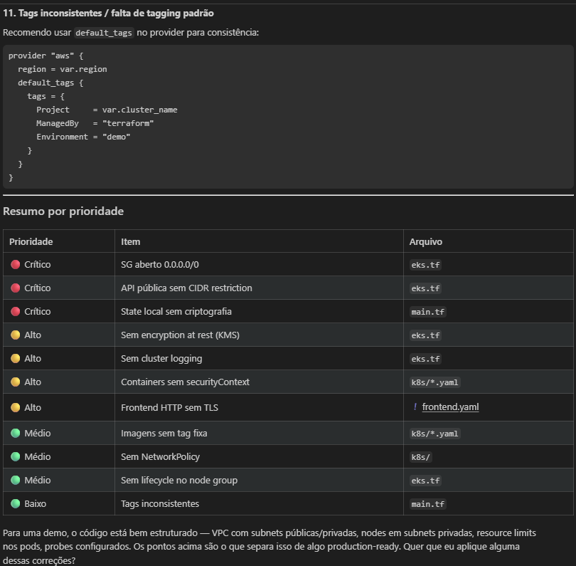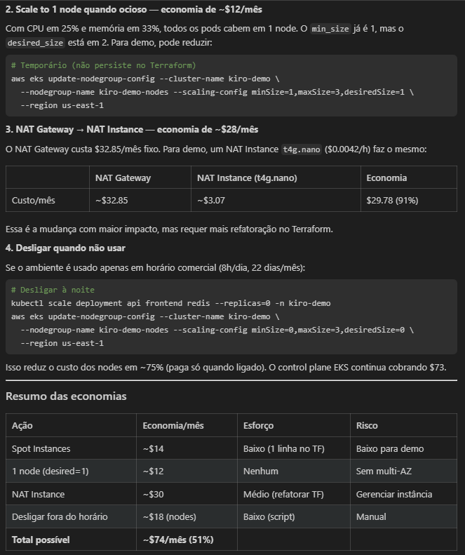 Ao final ele gera um resumo de toda a arquitetura, com roadmap de implantação, custo estimado da infraestrutura e como realizar o deploy, sensacional não é?