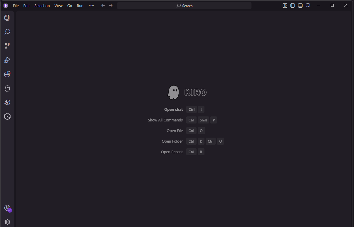 Ao abrir o Kiro será carregada uma janela similar a imagem abaixo: